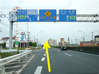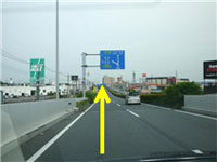 「合流注意」の標識が見えたら、左の側道に入る準備をしてください。