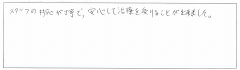 スタッフに対応が親切で、安心して治療を受けることが出来ました。