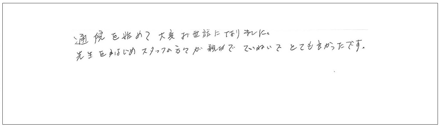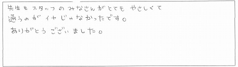 先生をはじめスタッフの方々が親切でていねいでとても良かったです。