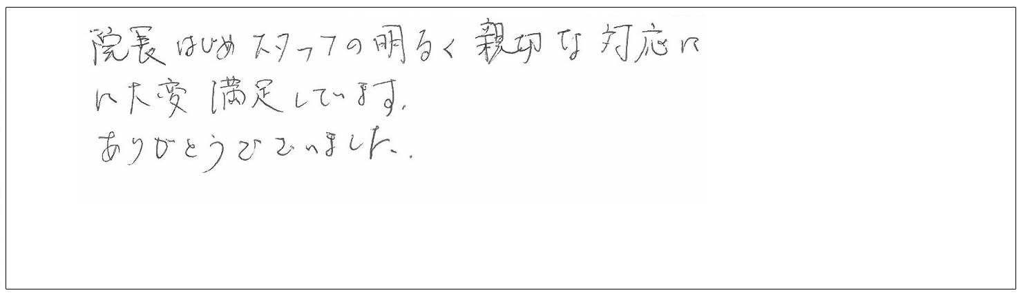 院長はじめスタッフの明るく親切な対応に大変満足しています。