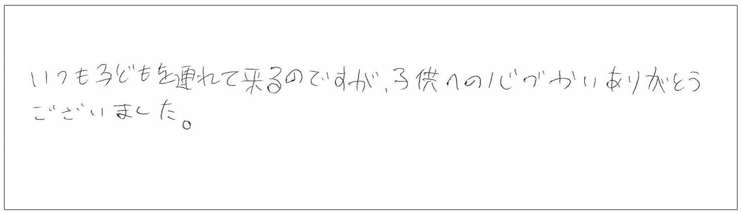 いつも子供を連れて来るのですが子供への心づかいありがとうございました。