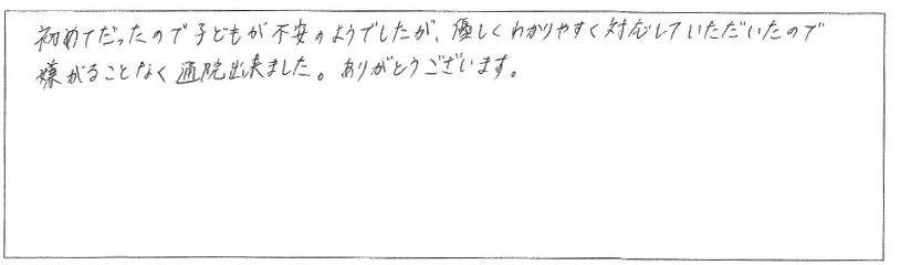 初めてだったので子どもがが不安のようでしたが、優しくわかりやすく対応していただい