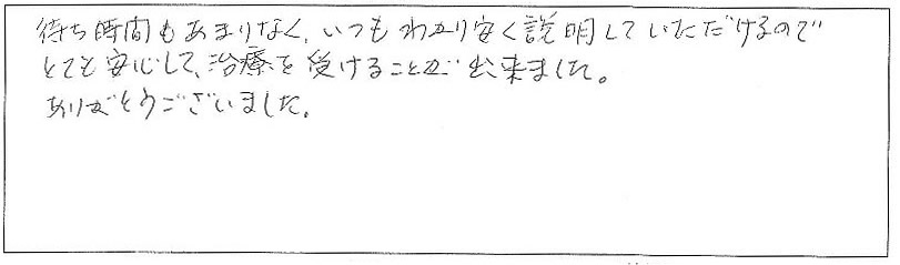 とても安心して治療を受けることができました。