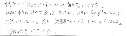 もっと歯を大切にしようと改めて思いました。これからもよろしくお願い致します。