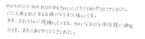ボロボロだった私のお口の中をきれいにしてくださりありがとうございました。