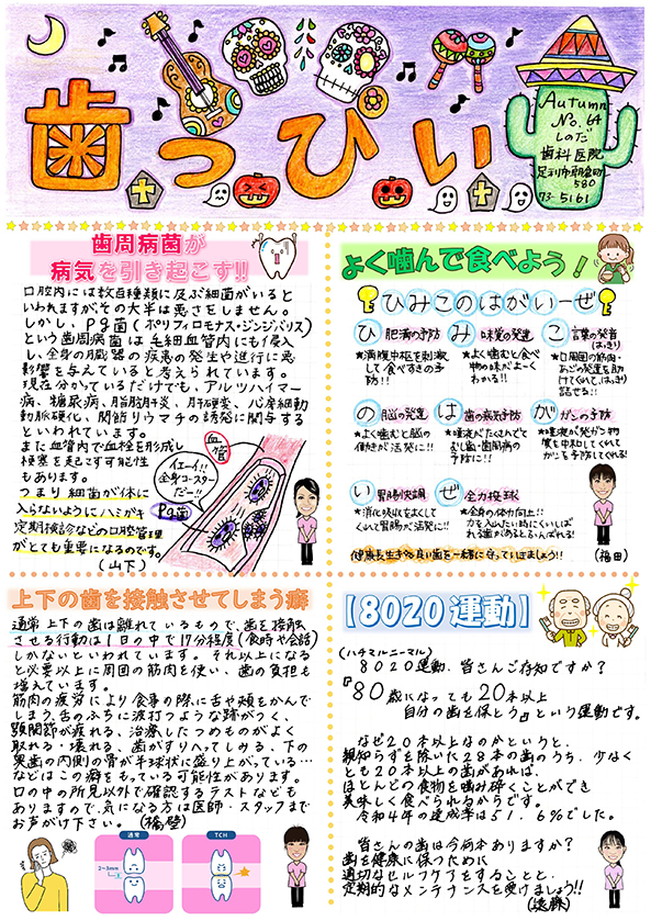 詳しくは、画像をクリックして、院内新聞「歯っぴぃ」2024年秋号をお楽しみください。