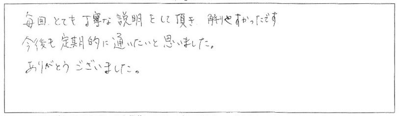 毎回とても丁寧な説明をして頂き解りやすかったです。