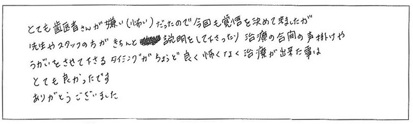 とても安心して治療を受けることができました。